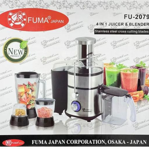 آب میوه گیری ۴کاره فوما ژاپن مدل FU2079,توان مصرفی 1200وات،جنس بدنه استیل ضد زنگ ،دارای مخزن تفاله 2لیتری از جنس پلاستیک مرغوب دو سرعته دارای پایه های ضد لغزش ،دهانه ورودی 75میلی متر