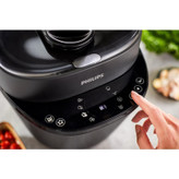 به جرات می توان گفت که مولتی کوکر فیلیپس مدل HD2151 یکی از پیشرفته ترین و جدید ترین محصولات صنعت آشپزی می باشد. این وسیله به شکل پلوپز طراحی شده است، و دارای کاربرد های متنوعی است. شما از مولتی کوکر فیلیپس مدل HD2151 می توانید به عنوان پلوپز، بخارپز، آرام پز،زودپز و.... استفاده کنید. قابلیت های بسیار زیاد مولتی کوکر فیلیپس مدل HD2151 باعث شده است تا ارزش خرید آن افزایش پیدا کند. مولتی کوکر فیلیپس مدل HD2151 قادر است بیش از 50 نوع غذا را برای شما تهیه نماید و دارای منوی گسترده ای می باشد. بر روی مولتی کوکر فیلیپس مدل HD2151 صفحه نمایشی وجود دارد که کاربر امکان تعامل با آن را دارد. مولتی کوکر فیلیپس امکان انتخاب نوع برنامه پخت و پز، و استفاده از تایمر را برای راحتی کاربران فراهم کرده است. مولتی کوکر مدل HD2151 فیلیپس دارای توان مصرفی 1090 وات می باشد. مولتی کوکر فیلیپس مدل HD2151 دارای 35 برنامه غذایی متنوع است، که در هر کدام دما و سطح فشار از قبل تنظیم شده است. و شما می توانید متناسب با هر نوع ماده غذایی؛ برنامه مخصوص خودش را انتخاب کنید.