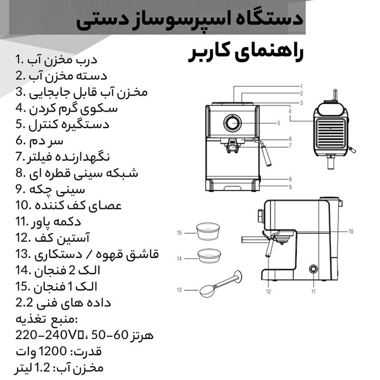 اسپرسوساز نوا مدل 149بافشار 15 بار "قابلیت انجام یک فنجان بزرگ یا دو فنجان کوچک "فیلتر دائمی استیل ضد زنگ "سر قابل تنظیم پاناتلا برای کاپوچینو کف دار"مخزن آب وسینی چکه قابل جابجایی"برای تهیه یک اسپرسو عالی وکاپوچینو خشمزه "برای یک دور همی خانگی بیادماندنی: 1250 وات