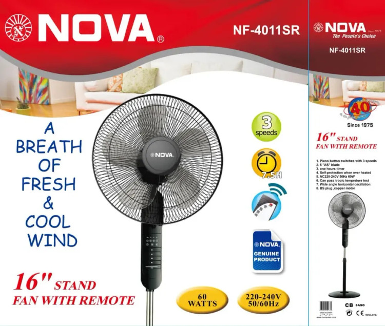 پنکه ایستاده ریموت دار "جنس پره پلاستیک مرغوب 5پره"سایز 16اینچ"3سرعته