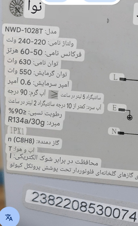 ابسردکن رومیزی اب سرد وگرم,توان 630 وات.توان گرمایش 550 وات.آمپر سرمایش 6/آمپر.آب گرم 90درجه سانتیگراد 5لیتر در ساعت .آب سرد کمتر از 10درجه سانتیگراد 2لیتردر ساعت.مبردR134a/30g
