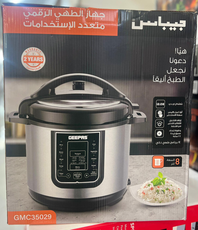 پلوپز 14 کاره 8لیتر "رنگ استیل مشکی "جنس بدنه استیل ضد زنگ :جنس ظرف روکش نچسب با دوام پوشش دیگ تفلون نچسب باکف الومینیمی"درب دو جداره استیل کلید قفل ایمنی وسوپاپ اطمینان: 1200 وات