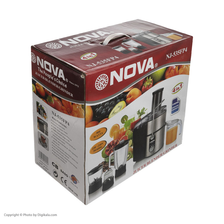 نوا مدل گلویی استیل اصل کاربرد آبمیوه گیری _ مخلوط کن _ خردکن _ آسیاب توان مصرفی ۸۰۰ وات تنظیمات سرعت ۲ سرعته ساختار بدنه استیل ضد زنگ حالت پالس دارد تیغه ها استیل ضد زنگ چراغ نشانگر LED پایه ها ضد لغزش گنجایش پارچ